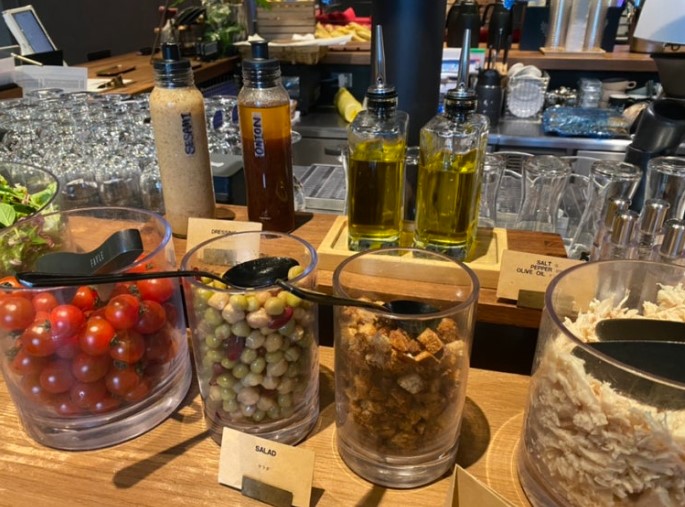 신선한 과일을 비롯한 다양한 샐러드, 빵, 계란 요리 등이 마련되어 있어 간단하지만 든든한 아침 식사를 즐길 수 있습니다. 투숙객뿐만 아니라 외부 고객도 조식을 이용할 수 있으며, 테이크아웃 옵션도 제공돼 바쁜 일정에도 편리하게 아침 식사를 해결할 수 있습니다.