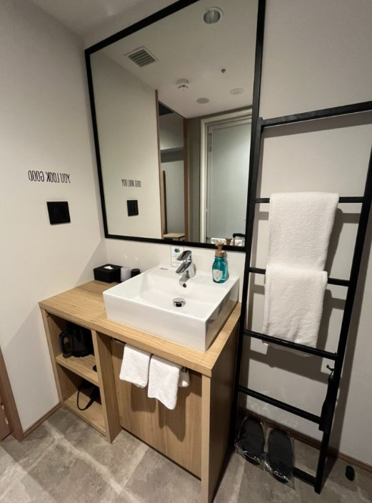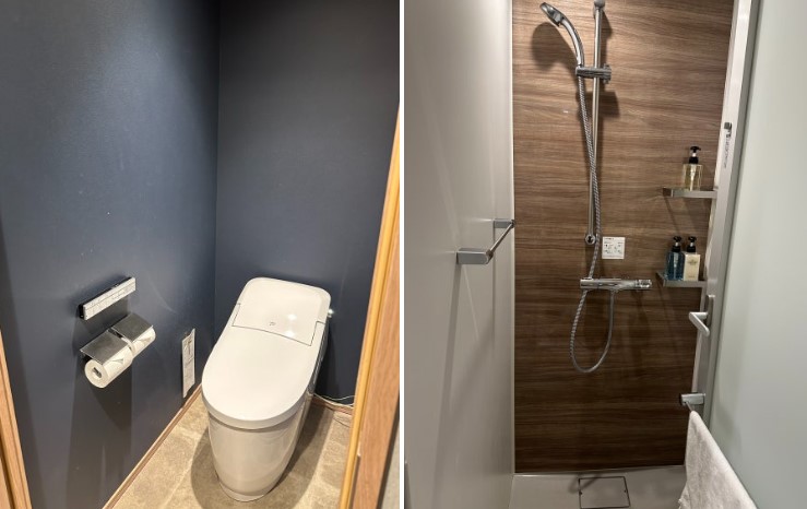 일반적인 일본 호텔에서는 욕실과 화장실이 함께 있는 경우가 많지만, 이 호텔에서는 별도로 분리된 구조 덕분에 더욱 위생적이고 편리하게 사용할 수 있었습니다. 샤워 공간도 좁지 않아서 쾌적한 느낌을 주었죠.