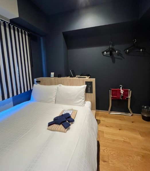 일본 숙소의 침대는 대체로 하드한 편인데, 더 스퀘어 호텔 긴자의 더블룸도 마찬가지입니다. 적당한 탄력감이 있어 허리를 편안하게 지지해주며, 푹신한 매트리스 덕분에 피곤한 여행 후에도 숙면을 취할 수 있었습니다. 침대의 크기와 배치는 두 명이 함께 머물기에 충분했습니다.