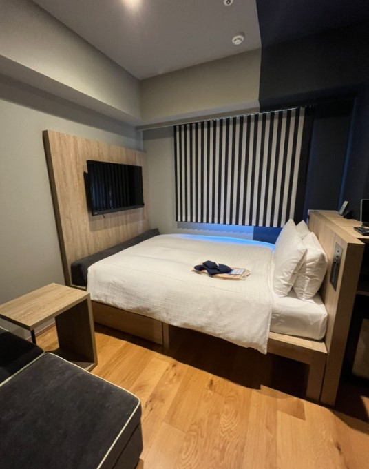 도쿄의 숙소들은 대체로 공간이 협소한 편입니다. 하지만 더 스퀘어 호텔 긴자의 더블룸은 공간이 작은 대신 매우 효율적으로 설계되어 있습니다. 기본적인 침대 외에 작은 소파나 책상이 배치되어 있어, 짐을 풀고 간단한 일이나 휴식을 취하기에 알맞습니다. 여행 중 하루의 피로를 풀기에 적합한 환경을 제공합니다.