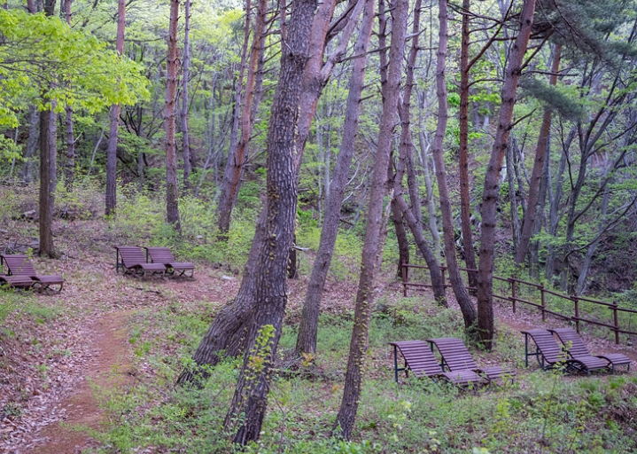 숲속 산책길, 트리 어드벤처, 소규모 전망대 등 휴양림 내의 다양한 자연 체험 코스도 마련되어 있습니다. 조용히 산책하거나 숲속 명상 시간을 갖기에 딱 좋은 곳이죠. 가볍게 한 바퀴 도는 데는 20~30분 정도 소요되며, 경사가 완만하여 남녀노소 누구나 이용 가능합니다.