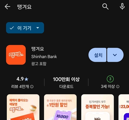 “땡겨요”라고 검색하면 바로 상단에 나옵니다.