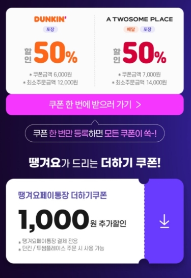 땡겨요 첫주문 할인 쿠폰 받는 방법