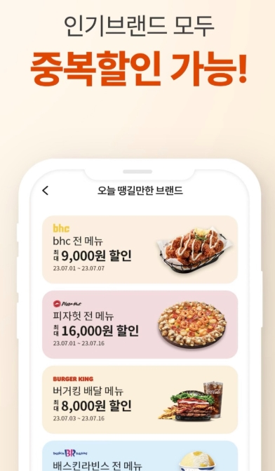 맘스터치, 교촌치킨 등 프랜차이즈와 연계된 쿠폰