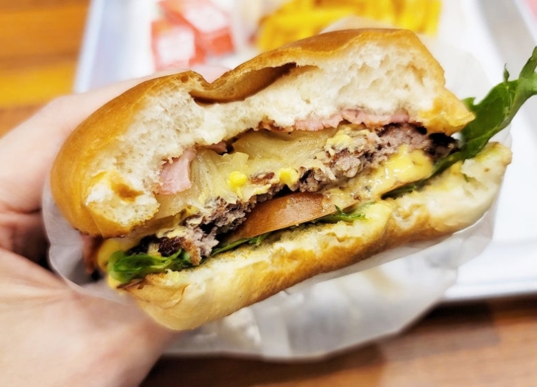 100% 소고기 패티를 두 장 사용해 고기의 풍미를 극대화한 버거입니다. 패티는 씹을수록 육즙이 흐르고, 체다치즈가 진하게 녹아들어 고소함을 배가시켜줘요. 여기에 생양파와 피클이 상큼함을 더해 느끼하지 않고 균형 잡힌 맛을 느낄 수 있습니다. 특히 식사 대용으로도 충분할 만큼 양이 넉넉해요.