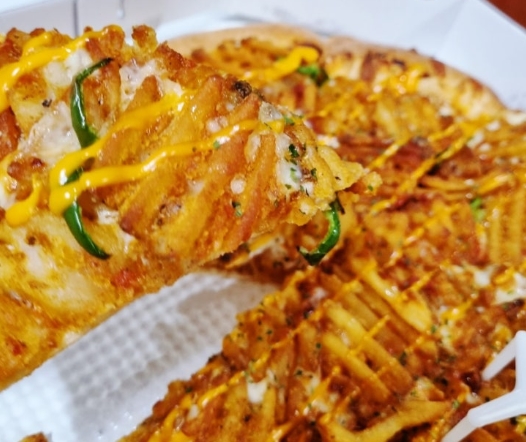 마치 감자튀김에 꿀을 뿌려 먹는 듯한 기분이 들면서도, 치즈의 깊은 풍미 덕분에 피자로서의 존재감도 뚜렷합니다.