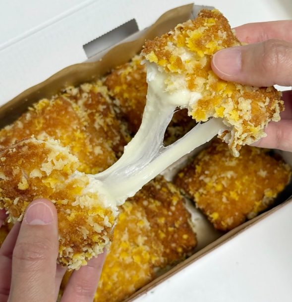 치즈핑 치킨은 단순히 치즈를 뿌린 수준이 아닙니다. 닭 안에 진짜 모짜렐라 치즈가 통으로 들어가 있어, 한 입 베어물면 치즈가 쭉 늘어나는 시각적인 즐거움까지 줍니다.