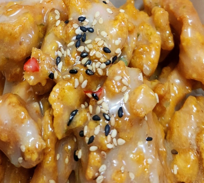불패치킨은 이름처럼 ‘맛에서 절대 지지 않는’ 맛을 선사합니다. 겉으로 보면 흔한 양념치킨처럼 보일 수 있지만, 한 입 베어물면 블랙페퍼 풍미 가득한 스모크 양념이 입안을 감싸고, 그 위에 진한 고다치즈 소스가 더해져 독특하면서도 고급스러운 맛의 조합을 이룹니다.