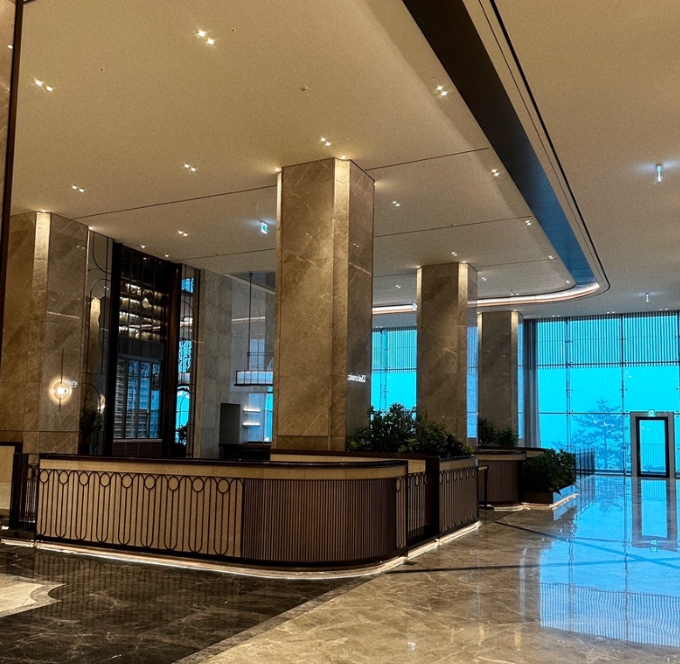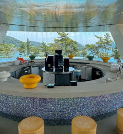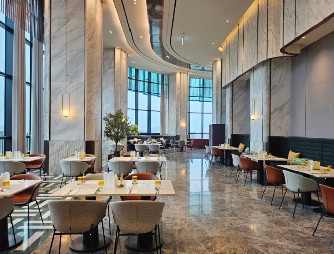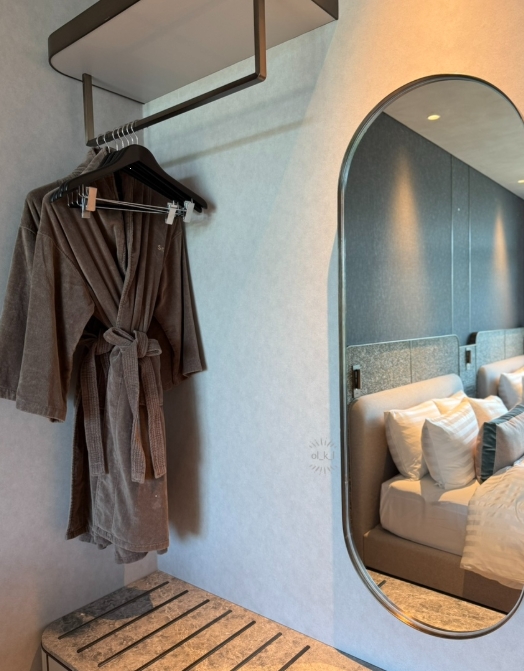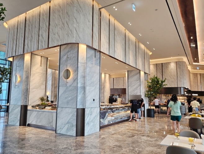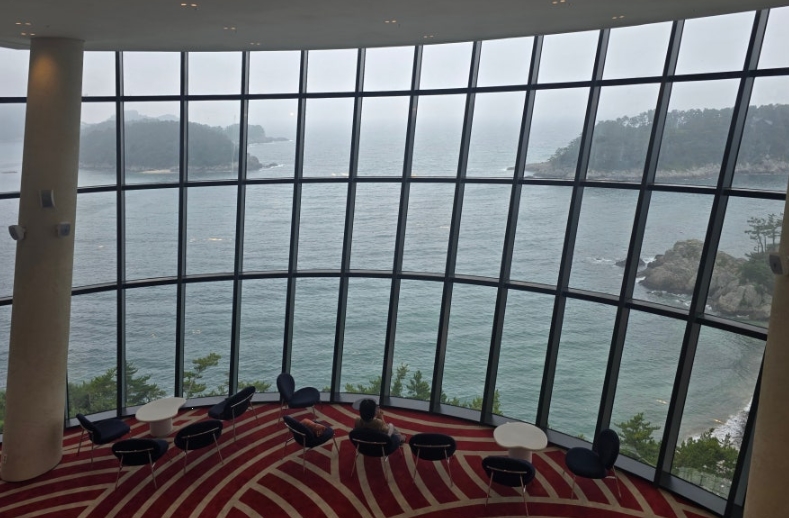 로비는 정말 압도적이었어요. 천장이 높고 유리창 너머로 햇살이 들어오는 구조라서 웅장하면서도 따뜻한 느낌이었거든요. 넓은 소파와 대기 공간도 마련돼 있어서 여유롭게 휴식을 취할 수 있었고, 로비 한쪽에는 카페도 있어 커피 한 잔 하며 바다를 바라보는 여유를 즐길 수 있었어요.