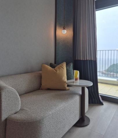 제가 묵은 객실은 디럭스룸 오션뷰였어요. 문을 열고 들어가자마자 가장 먼저 눈에 들어온 건 창밖으로 보이는 푸른 바다였어요. 바다와 바로 맞닿은 듯한 객실의 구조 덕분에 마치 수면 위에 떠 있는 느낌이 들더라고요.
