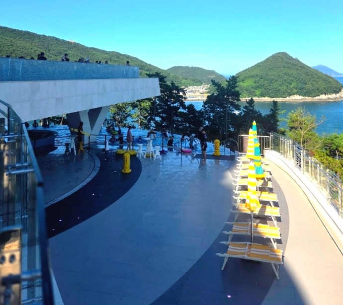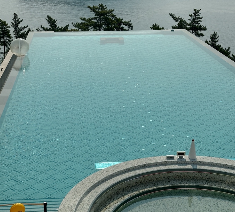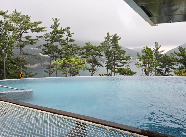 풀장은 생각보다 크진 않았지만 바다와 수평선을 맞닿은 듯한 구조 덕분에 분위기 자체가 고급스러웠어요. 온수풀이 제공되어 늦은 저녁에도 따뜻하게 수영할 수 있었고, 물의 청결 상태도 좋았어요. 아이들을 위한 유아풀과 낮은 수심의 패밀리풀도 따로 구비되어 있어서 가족 단위 방문객에게도 좋아 보였어요.