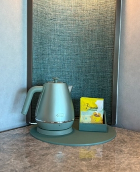 객실 내부에 있는 미니 냉장고와 전기포트, 티백 구성도 깔끔했어요. 커피 한 잔 내려서 창가에 앉아 바다를 바라보는 시간이 참 좋았어요.