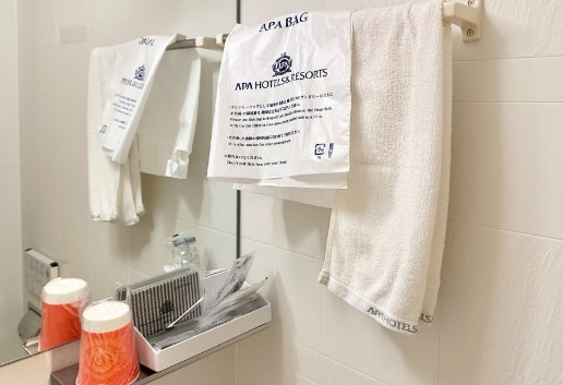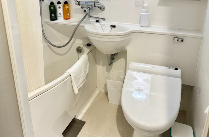 욕실 역시 일본 호텔답게 작았지만 욕조가 있어 여행의 피로를 풀기에 딱 좋았어요. 샴푸, 린스, 바디워시는 기본적으로 제공되지만, 샴푸의 질이 조금 아쉬웠어요. 개인적으로 머리결이 쉽게 뻣뻣해져서, 머리카락이 예민하신 분들은 본인의 제품을 챙겨가는 것이 좋을 것 같아요.