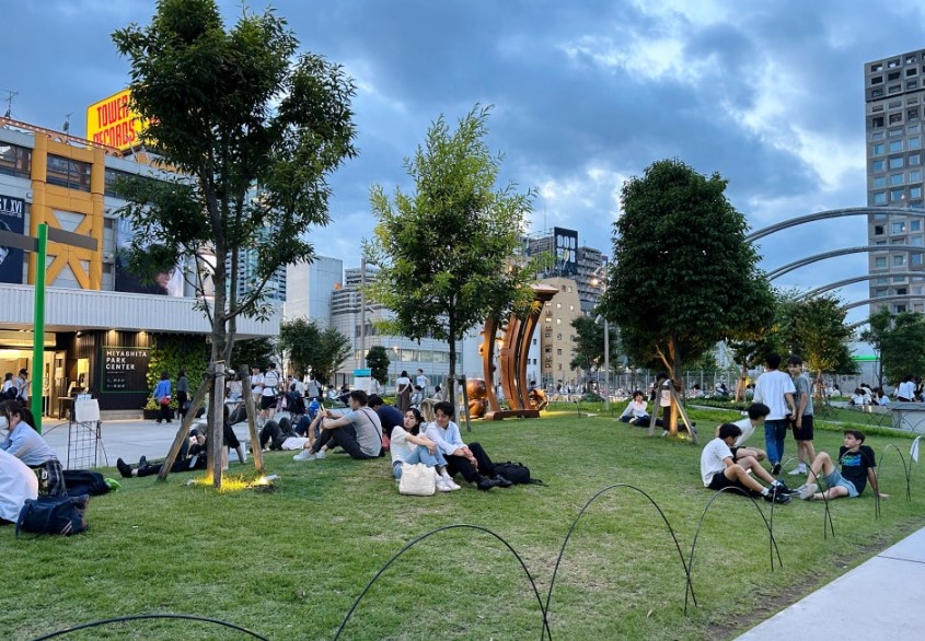 미야시타 파크를 처음 방문하면 "와, 청춘이다!"라는 느낌이 절로 들 만큼 활기찬 분위기를 느낄 수 있습니다. 특히 저녁 시간대에는 곳곳에서 친구나 연인들이 삼삼오오 모여 이야기를 나누는 모습을 쉽게 볼 수 있는데요, 이들이 모여 있는 모습을 보면 정말 도쿄 속 청춘의 에너지를 실감하게 됩니다.