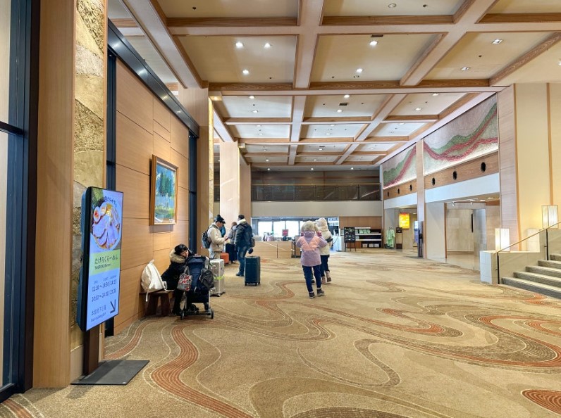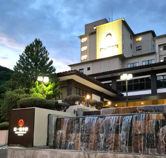 삿포로에서 노보리베츠행 도난 버스를 이용하여 도착했는데, 다이이치 타키모토칸 앞 정류장에서 하차하니 위치가 매우 편리했습니다. 외관부터 남다른 분위기를 풍기는 이 료칸은 규모가 크고 넓어서 감탄을 자아냈습니다.