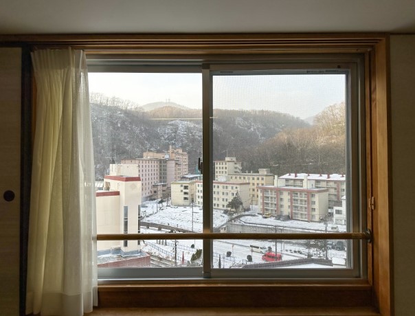 객실의 큰 창문은 자연 채광이 잘 들어오도록 설계되어 있어 개방감이 좋고, 체크인 날에는 비가 내리더니 다음 날은 맑은 날씨를 보여줘서 뷰가 정말 아름다웠습니다. 객실의 발코니에서는 주변의 아름다운 자연 경관을 감상할 수 있었고, 저녁에는 편안한 의자에 앉아 조용히 하루를 정리하는 시간을 가질 수 있었습니다.