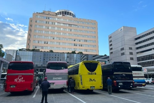 아침 8시 30분까지는 하카타역에 도착하는 것이 좋습니다. 평일에도 많은 관광객과 여행사 직원들이 모여 있기에 미리 준비해두면 좋습니다.