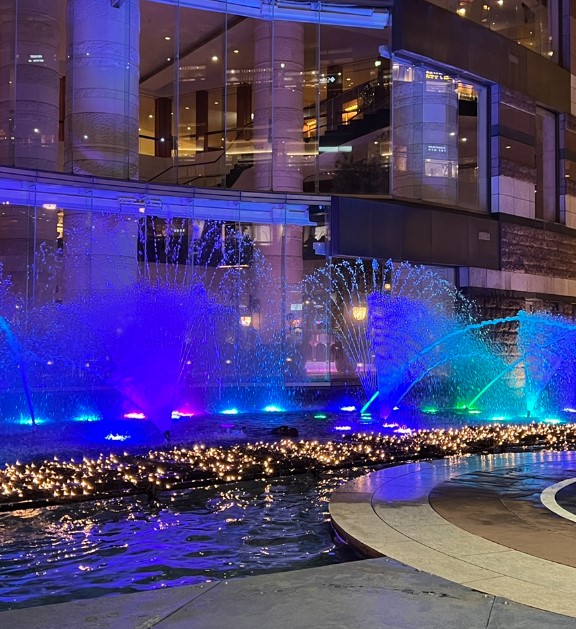 캐널 시티의 가장 큰 볼거리 중 하나는 바로 분수쇼입니다. 분수쇼는 하루에도 여러 번 진행되는데, 쇼핑몰 중앙의 큰 분수대에서 음악과 함께 화려한 물줄기가 춤을 추는 광경을 볼 수 있어요.