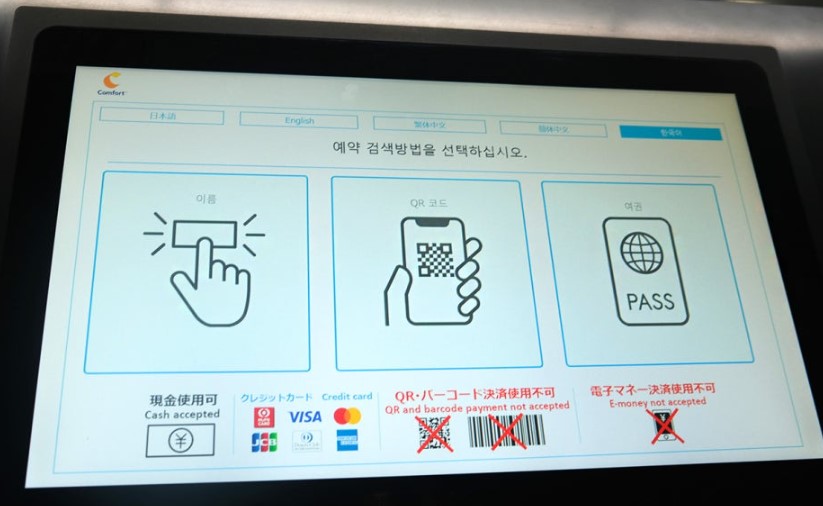 컴포트 호텔 하카타의 또 다른 장점은 셀프 체크인/체크아웃 시스템이에요. 일본어 혹은 영어로 소통이 어렵더라도 걱정할 필요 없이 기계를 통해 간단하게 체크인과 체크아웃을 할 수 있답니다.