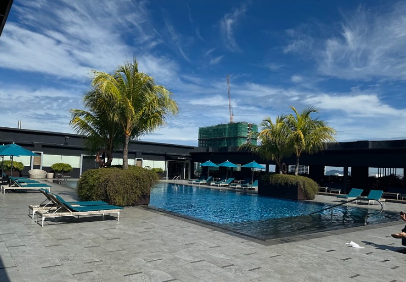 루프탑 수영장은 이 호텔의 자랑입니다. 낮에 여러 관광지에서 돌아다닌 후 저녁에 이용했는데, 수영장 이용 시간이 오전 6시부터 오후 10시까지여서 여유롭게 이용할 수 있었습니다. 수심은 1.3m로 성인이 놀기에 적당했고, 주변에 유아 풀도 따로 있어 가족 여행객들에게도 적합한 장소였습니다.