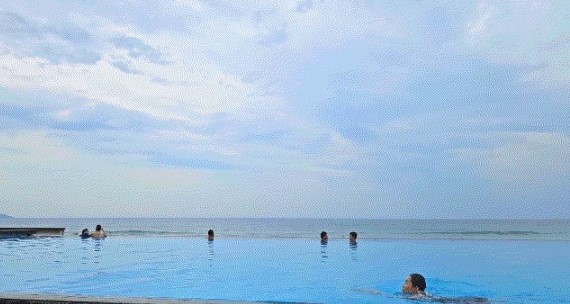 여행의 마지막 날, 일찍 일어나 리조트 내 인피니티 풀에서 아침을 맞이했습니다. 코사무이의 끝없이 펼쳐진 바다를 바라보며 수영을 하는 기분은 말로 표현할 수 없을 만큼 상쾌했어요. 여행 내내 바쁜 일정 속에서도 이런 여유로운 순간들을 통해 진정한 휴식을 느낄 수 있었습니다.