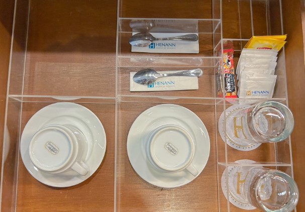 냉장고와 커피포트, 찻잔, 티백 등 다양한 편의시설도 구비되어 있어, 방에서 여유롭게 차 한 잔을 마시며 휴식을 취할 수 있었어요.