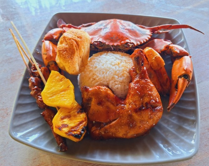 물놀이 후에 먹는 식사는 그야말로 꿀맛이었어요. 다양한 씨푸드와 바베큐가 준비되었는데요, 그 중에서도 알리망오 게는 정말 일품이었어요. 직원분들이 먹기 좋게 발라주셔서 손쉽게 맛있게 먹을 수 있었어요.