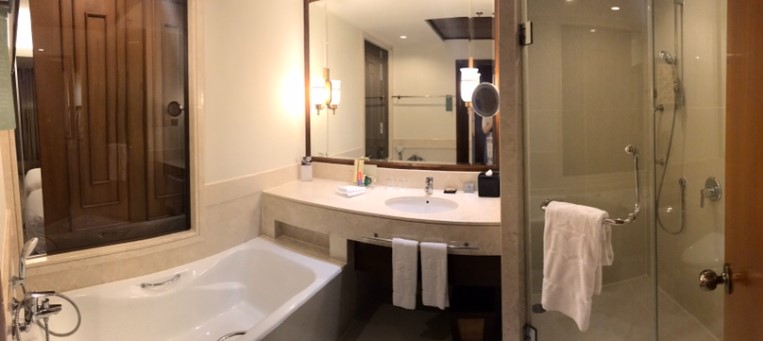 디럭스룸의 욕실은 모던한 디자인과 편리한 시설로 여행객들에게 최상의 만족을 제공합니다. 샴푸, 린스, 바디젤, 바디로션 등 다양한 고급 세면도구가 준비되어 있어 필요할 때 언제든지 사용 가능합니다.