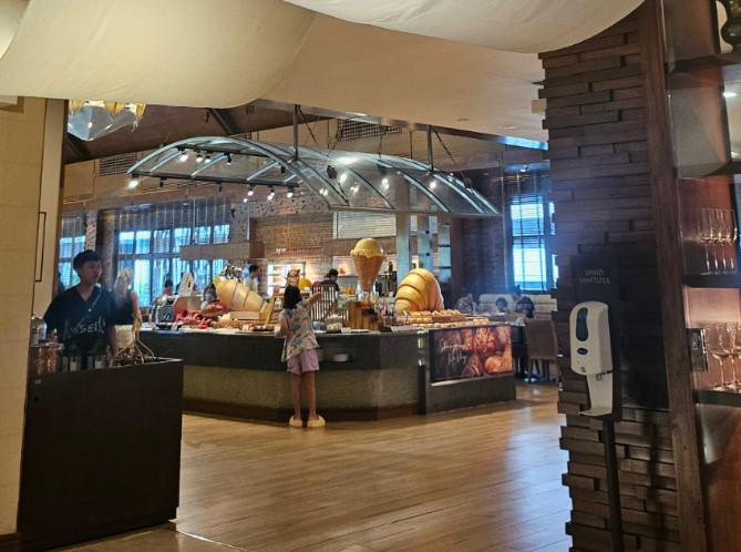 조식 뷔페는 씨리얼, 샐러드, 생과일, 빵 등 기본적인 음식으로 풍성하게 구성되어 있습니다. 특히 계란 요리 코너가 매우 인기가 높습니다. 스크램블 에그, 오믈렛, 반숙 및 완숙 삶은 계란 등 다양한 요리를 선택할 수 있습니다..