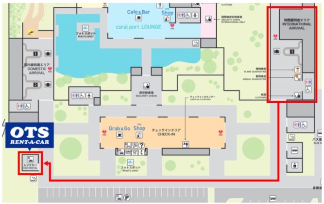 OTS는 공항에서 나와 화살표 스티커를 따라가면 쉽게 찾을 수 있는 위치에 있어 처음 방문하는 분들도 헤매지 않고 렌트카를 찾을 수 있습니다.