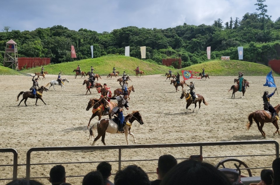 둘째 날 첫 일정은 더마파크입니다. 제주도의 유명한 말 공연을 관람할 수 있는 곳으로, 말이 등장하는 다양한 퍼포먼스를 감상할 수 있어 아이들과 함께 즐기기에 좋습니다.