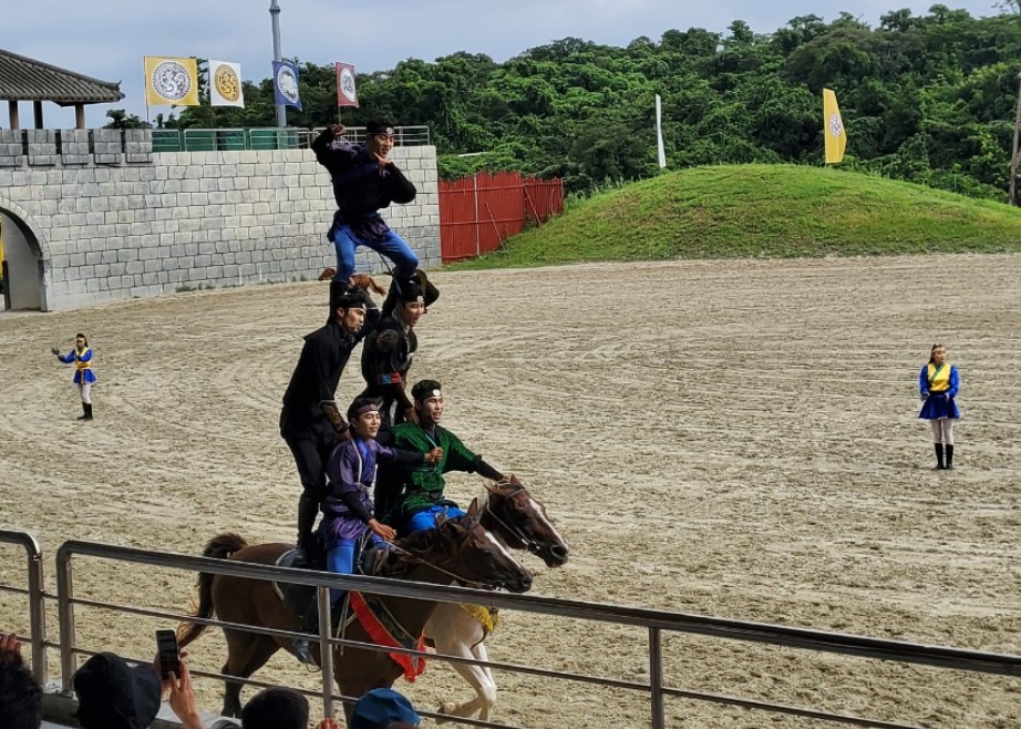 활쏘기 퍼포먼스는 마치 영화 속 한 장면처럼 박진감 넘쳤고, 부모님께서도 매우 흥미롭게 감상하셨습니다.