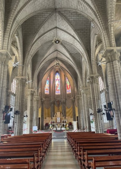 다음 목적지는 나트랑 시내 한가운데에 위치한 나트랑 대성당입니다. 이곳은 프랑스 식민지 시대에 지어진 유럽풍 건축물로, 그 외관이 웅장하고 아름다워 관광객들에게 많은 사랑을 받고 있습니다.