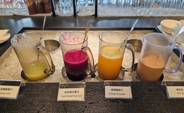 과일 주스는 진짜 생과일을 듬뿍 갈아 넣어 마시는 느낌이었고, 구아바와 믹스 프룻 주스 모두 신선하고 달콤해서 아침을 상쾌하게 시작할 수 있었어요. 이 외에도 밀크티, 야쿠르트, 요거트 음료 등 다양한 음료가 준비되어 있었습니다.