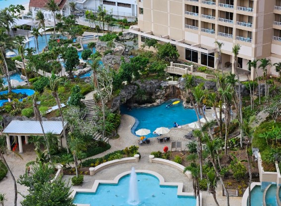 괌 하얏트 리젠시의 수영장은 정말 매력적이었어요. 수영장에는 워터 슬라이드가 있는 큰 수영장이 3곳이나 있어서 아이들과 함께 놀기 좋았습니다. 수영장은 마치 정글 속으로 들어가는 듯한 느낌을 주었고, 넓은 공간 덕분에 혼잡하지 않아 여유롭게 수영을 즐길 수 있었어요.