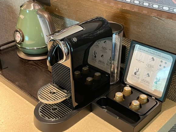 또한 캡슐 커피머신과 캡슐 커피도 준비되어 있어, 아침에 향긋한 커피 한잔을 즐길 수 있는 여유를 누릴 수 있습니다.