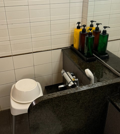 대욕장은 넓지는 않았지만, 샤워기 3개작은 탕이 있었고, 저희 3명이 들어가기에 충분한 크기였습니다. 샴푸, 컨디셔너, 바디워시가 준비되어 있어서 따로 세면도구를 챙기지 않아도 되니 편리했습니다. 또 대욕장에서는 목욕을 하며 하루의 피로를 풀고, 다시 여행을 즐길 힘을 얻을 수 있었죠.