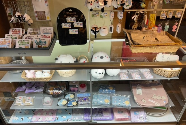 료칸 로비는 아담한 카페처럼 생겼고, 한쪽에는 다양한 삿포로 기념품들이 전시되어 있었어요. 특히 삿포로에서만 볼 수 있는 기념품들이 귀여워서 둘러보는 재미가 있었습니다.