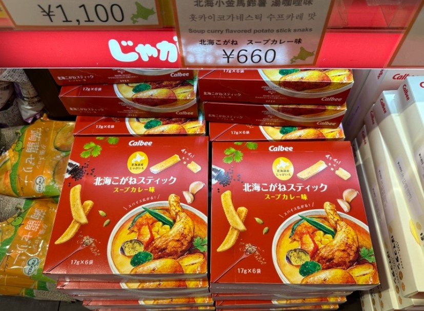 홋카이도산 감자 특유의 달콤함과 바삭한 질감으로 한번 먹으면 멈추기 힘든 중독성을 자랑합니다. 특히 홋카이도 한정판 맛도 있어 공항에서만 구할 수 있는 특별한 제품을 만날 수 있습니다.
