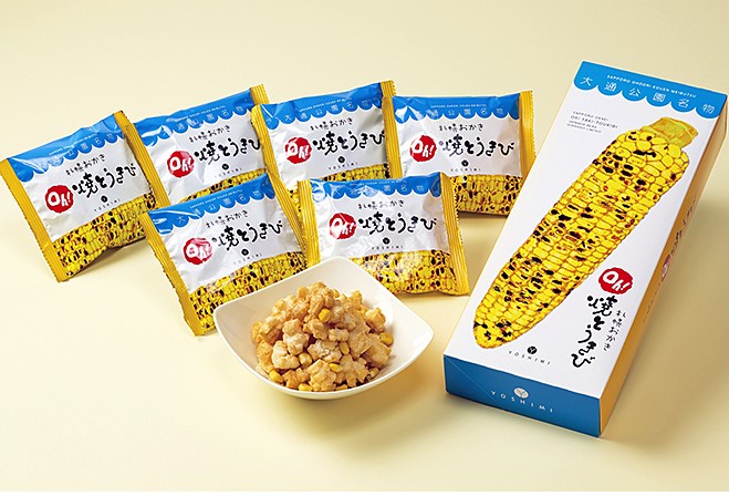 요시미 야키토우키비는 찹쌀 반죽에 홋카이도산 옥수수가루를 섞어 구워 만든 과자입니다. 바삭한 식감과 함께 진한 옥수수의 고소한 맛을 느낄 수 있는 것이 이 제품의 매력입니다.