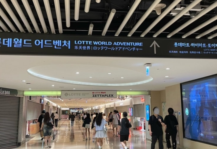이 통로는 평소에도 쇼핑객과 관람객으로 붐비는 곳이지만, 롯데월드 내부로 자연스럽게 이어져 있어서 특히 날씨가 궂은 날에도 우산 없이 방문할 수 있다는 점이 큰 장점입니다.