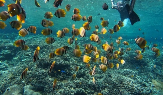 스노클링 장비를 착용하고 물속에 들어가자마자 산호초와 형형색색의 열대어들이 한가득.