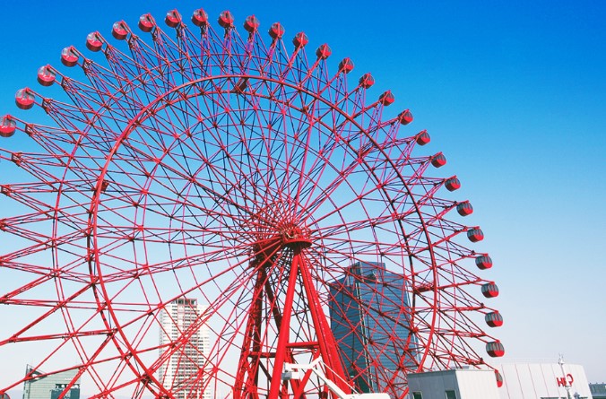 점심 식사를 마치고 난 뒤에는 햅 파이브 대관람차를 타보세요. 햅 파이브는 대형 쇼핑몰 안에 위치한 관람차로, 오사카 시내 전경을 한눈에 볼 수 있어요.
