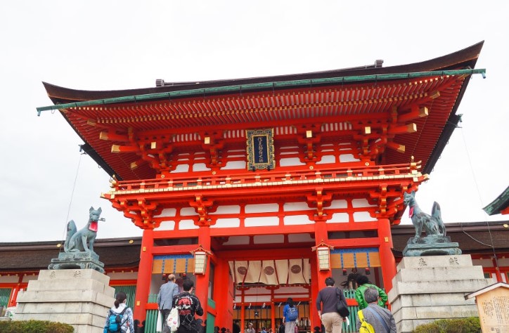 먼저, 후시미 이나리 신사를 추천합니다. 이곳은 일본에서 가장 유명한 신사 중 하나로, 수천 개의 붉은 토리이(기둥형 문)가 신사 입구부터 산 정상까지 끝없이 이어지는 것으로 유명합니다.