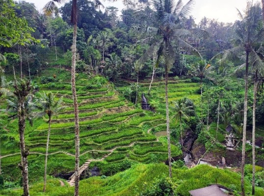 우붓을 대표하는 풍경 중 하나는 바로 계단식 라이스 테라스입니다. 계단식 농법으로 지어진 논들이 계단처럼 펼쳐져 있어 마치 푸른 자연의 계단을 보는 듯한 아름다운 풍경을 자아냅니다.